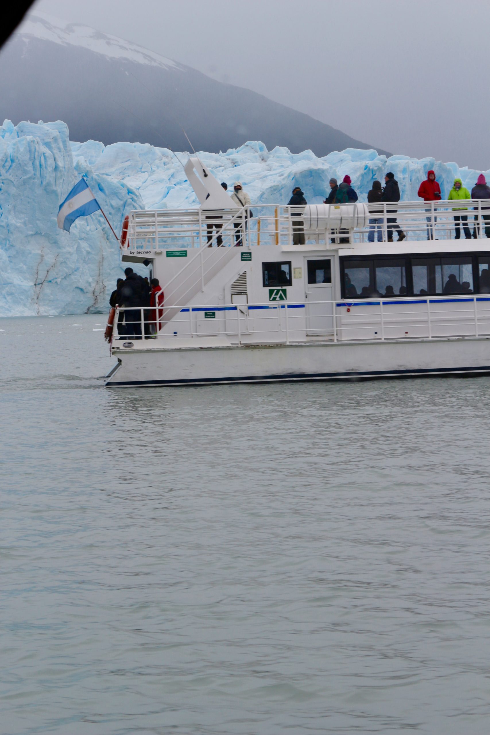 カラファテの街からバスで。そこから船で氷河へ。